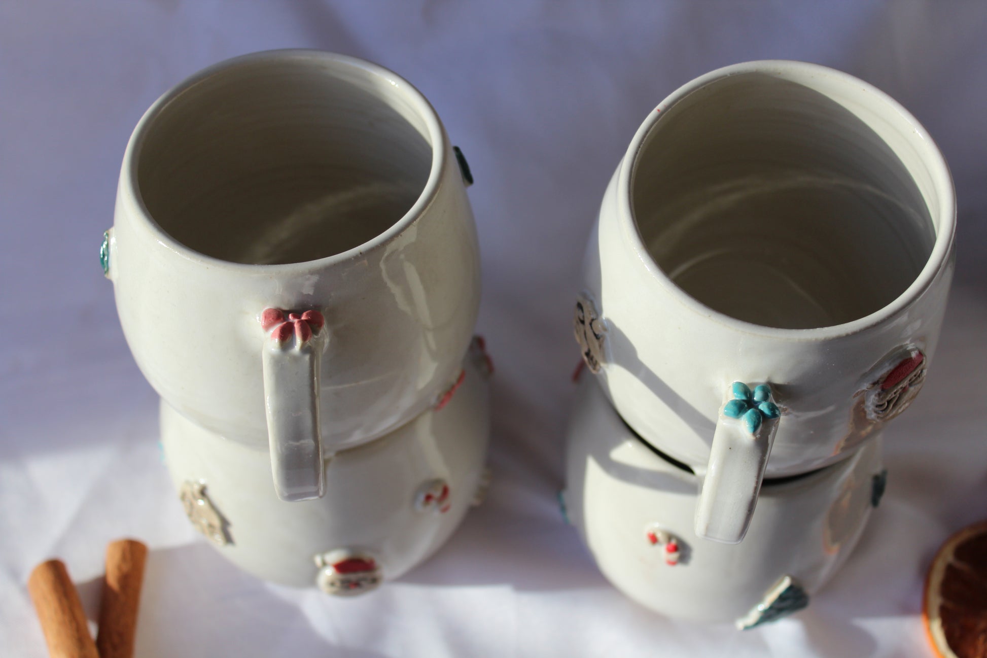 Weihnachtstasse mit Applikation am Henkel